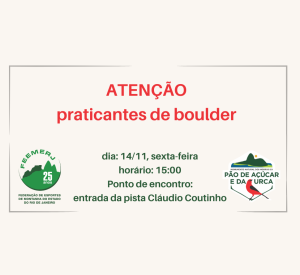 A FEEMERJ e a gestão do MoNa Pão de Açúcar convidam a comunidade de boulder para uma conversa sobre a prática da modalidade dentro dos limites do MoNa – que incluem os principais setores de boulder da Urca.